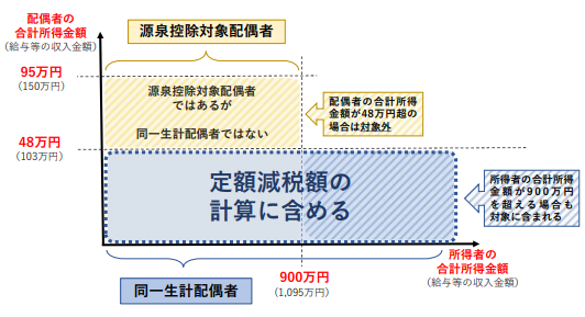 給与所得者本人及びその配偶者を含めた扶養親族1人につき、令和6年分の所得税から3万円・住民税から1万円の減税を実施