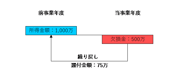前事業年度の所得金額:1,000万、法人税額:150万、当事業年度の欠損金:500万