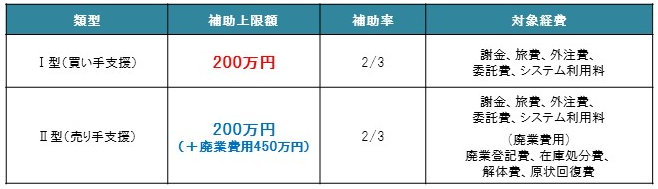 買い手支援型(Ⅰ型)・売り手支援型(Ⅱ型)それぞれの審査基準となる項目は以下の通りです。
